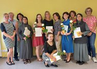 Foto © Katharina Kasper Gruppe (v.l.n.r.) Sr. Sumiya, Sarah Kunze, Elena Tschujko, Sr. Jomia, Nazmiye Yildiz (vorne) sowie die Lehrkräfte und die Prüfungsvorsitzende