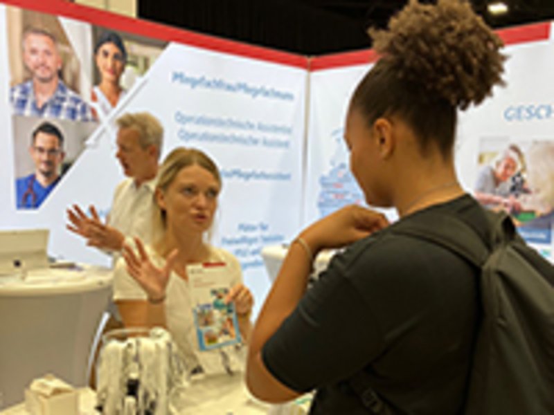 Düsseldorf, 14. Juni 2023. Gute Stimmung und viele interessante Gespräche gab es für unser Team der Pflegedirektion/Ausbildungskoordination auf der diesjährigen Vocatium in Düsseldorf. Auf dieser Fachmesse für Ausbildung und Studium stellten wir am 13. und 14. Juni die Ausbildungsmöglichkeiten in unserem St. Martinus-Krankenhaus in Düsseldorf vor.