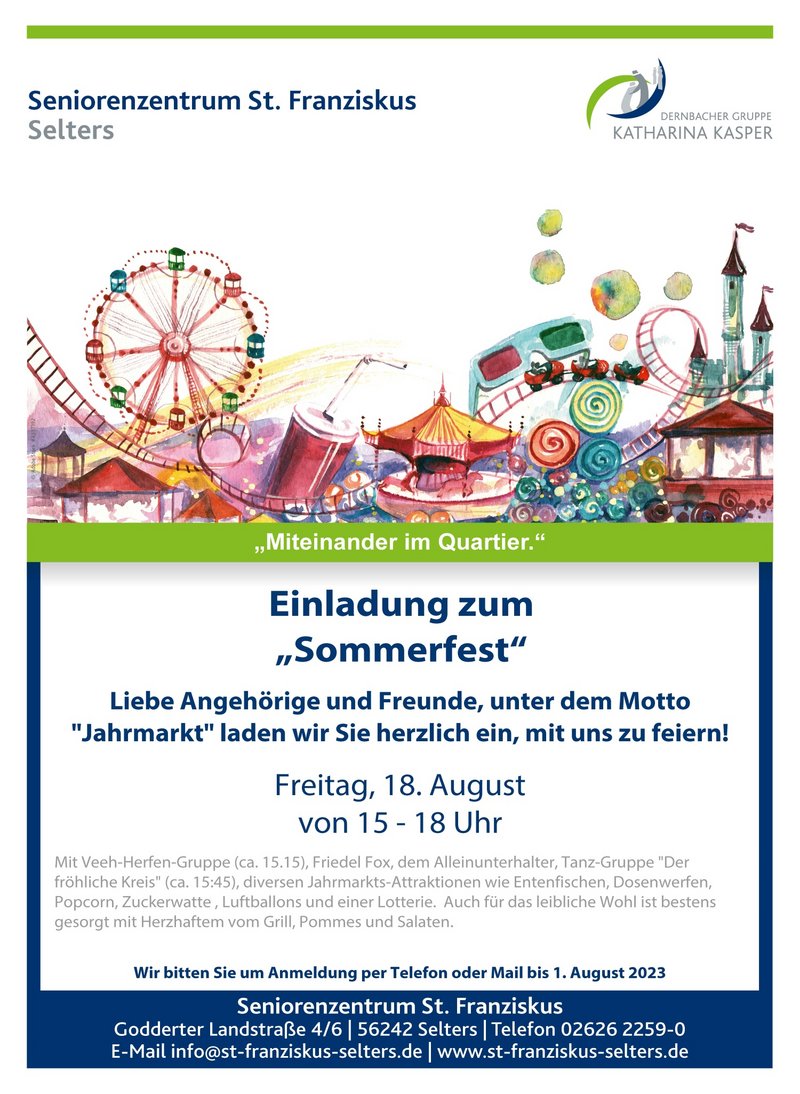 Selters, im August 2023. Bei strahlendem Sonnenschein und guter Laune durften wir unser diesjähriges Sommerfest mit zahlreichen Gästen, Bewohnern und Sponsoren im Seniorenzentrum St. Franziskus in Selters feiern.
