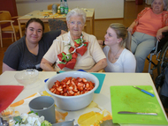 Am 30. Juni 2016 drehte sich im Seniorenzentrum St. Josef in Koblenz-Horchheim alles um die Erdbeere. Der Tag begann mit einer fröhlichen Kochrunde. Während die frischen Erdbeeren gemeinsam geputzt und in Stücke geschnitten wurde ergab sich eine rege Unterhaltung über die unterschiedlichen Sorten der Erdbeeren, ihre Pflanz- und Reifezeit sowie Geschmack und Farbe. Spontan wurde in dieser Runde Elisabeth Becher von der Bewohnerschaft zur Erdbeerkönigin gekrönt. Die 101-jährige war früher als Floristin beschäftigt und überzeugt auch heute noch mit ihrem Fachwissen über Blumen und Pflanzen.