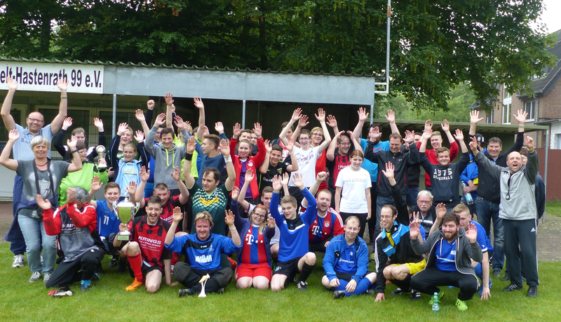 Die Organisatoren hatten sich im Herbst des letzten Jahres aufgrund der Belegung der Sporthalle kurzer Hand entschieden, das Turnier in den Sommer 2016 auf den Gangelter Sportplatz zu verlegen. Gespielt wurde wieder in gemischten, inklusiven Teams, bestehend aus Menschen mit Handicap und Schülerinnen und Schülern der 10. Klasse. Auch wieder mit dabei war das Team der Lebenshilfe Heinsberg. Ein besonderer Dank gilt in diesem Zusammenhang auch dem Verein Biker & Triker – Freunde ohne Grenzen Selfkant e.V., der die Pokale sponserte. Trotz des mäßigen Wetters hatten alle Beteiligten großen Spaß an diesem Inklusions-Fußballturnier. Neben vielen Toren standen vor allen das Gemeinschaftliche und die Unterhaltungen zwischen Menschen mit und ohne Handicap im Vordergrund.