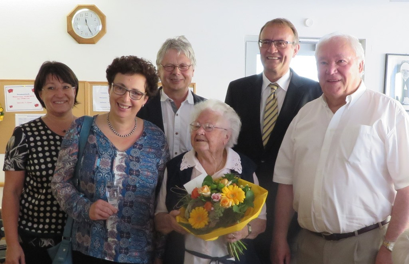Zum Foto: Frau Johanna Mayhack mit ihren Gratulanten