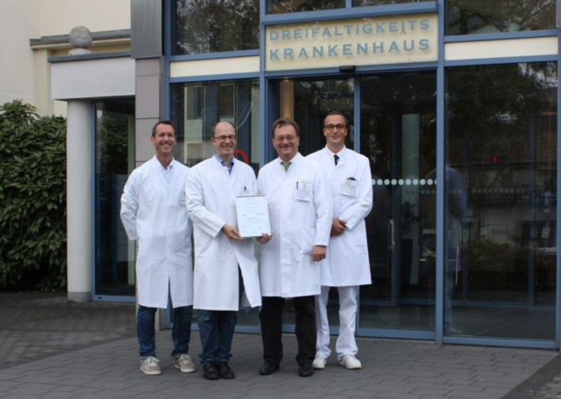 Bildunterschrift: von links: Dr. Jens Felix Wagner, PD Dr. Albert Lukas (beide Malteser Krankenhaus Seliger Gerhard), Dr. Uwe Ruscher, Dr. Max Christian Wilmsen (beide Dreifaltigkeits-Krankenhaus)