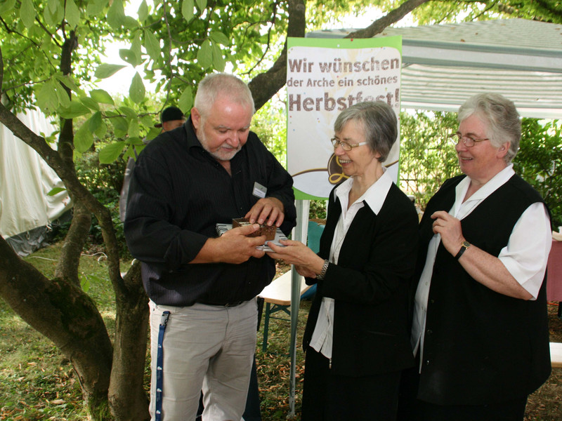 Mit großer Freude und nicht ohne einen herzlichen Dank auszusprechen, nahm Udo Heistermann, Standortleiter der ViaNobis – Die Jugendhilfe, das Geld im Rahmen des Herbstfestes der Arche aus den Händen von Sr. M. Simone Weber ADJC, Provinzoberin der Deutschen Provinz der Dernbacher Schwestern, in Empfang.